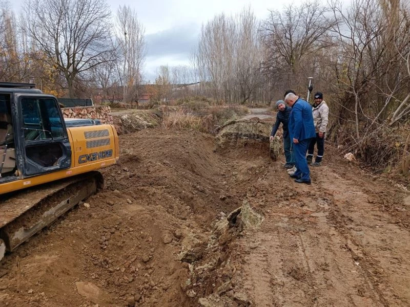 Hisarcık Belediye Başkanı Fatih Çalışkan, 4 ay önce başlanan Küçükçay taşkın koruma projesi çalışmalarını yerinde inceledi.
