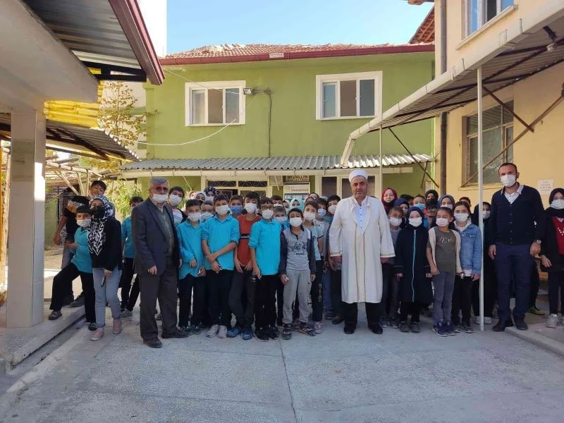 Cami görevlisi Ali Sevinç’in Camiler ve Din görevlileri Haftasını kutlayan öğrenciler kendisine hediye takdim etti.