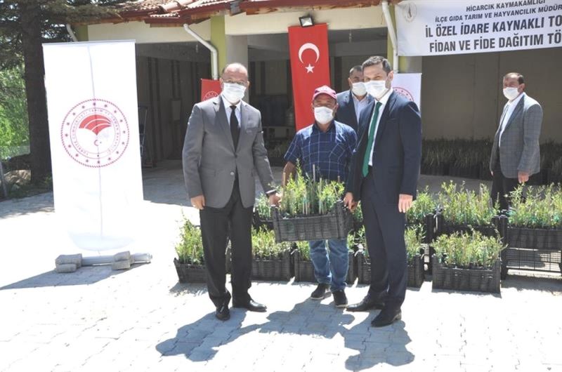 İlçe Tarım ve Orman Müdürlüğü hizmet binası bahçesinde düzenlenen fidan dağıtım törenine, Kaymakam Buğra Karadağ, Belediye Başkanı Fatih Çalışkan, İl Tarım ve Orman Müdürü Orhan Özçalık, AK Parti İlçe Başkanı Ali Var, Ziraat Odası Başkanı Yusuf Çalışkan, İl Genel Meclisi üyeleri Mustafa Şen ve İbrahim Kılıç ile çiftçiler katıldı.