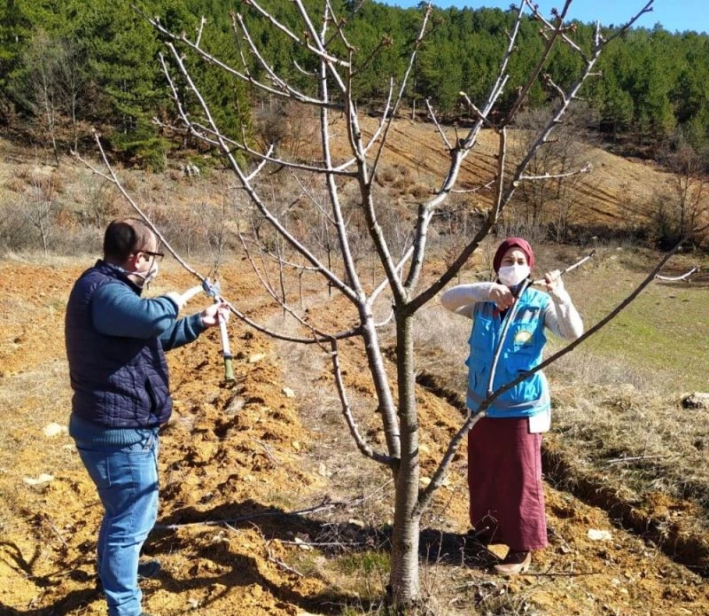 Kurtdere köyündeki bahçelerde uygulamalı eğitim veren Ziraat Mühendisleri çiftçilere şekil budaması, budama teknikleri ve budamada dikkat edilmesi gereken hususlar ile elma, kiraz ve armut ağaçlarında bakım tekniklerini anlattılar. Ayrıca 5 yaşındaki ağaçlara modifiye lider ve goble budaması yapılması uygulamalı olarak gösterildi.