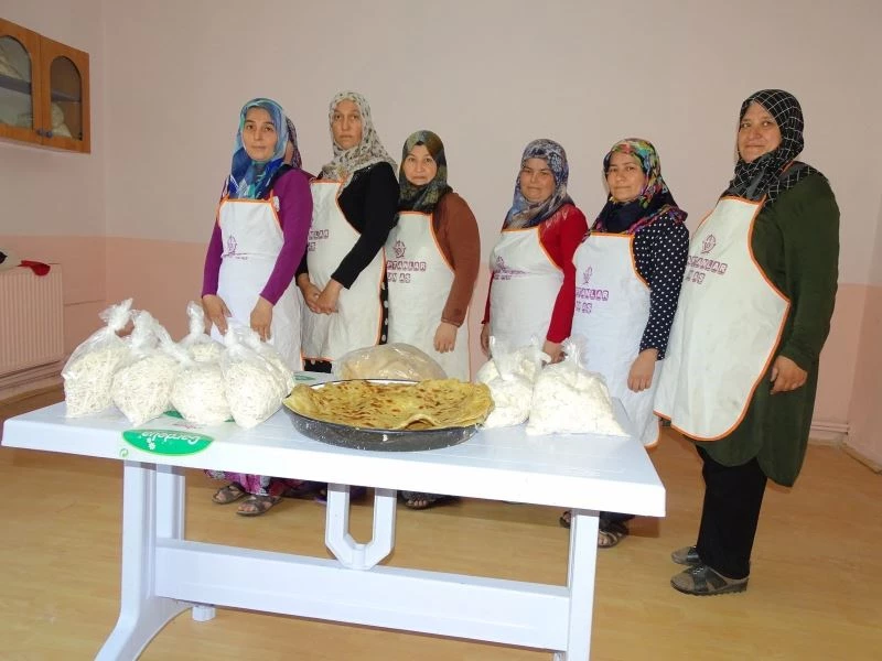 Kadın Girişimi, Üretimi ve İşletme Kooperatifi Başkanı Yasemin Özdinç, Kooperatif bünyesindeki kadınlar tarafından hazırlanan yöresel haşhaşlı, yağlı, peynirli gözleme çeşitleri, erişte, köy ekmeği, bulgur ile yufkanın mahallelerde ve pazarda satışa sunulduğunu söyledi.