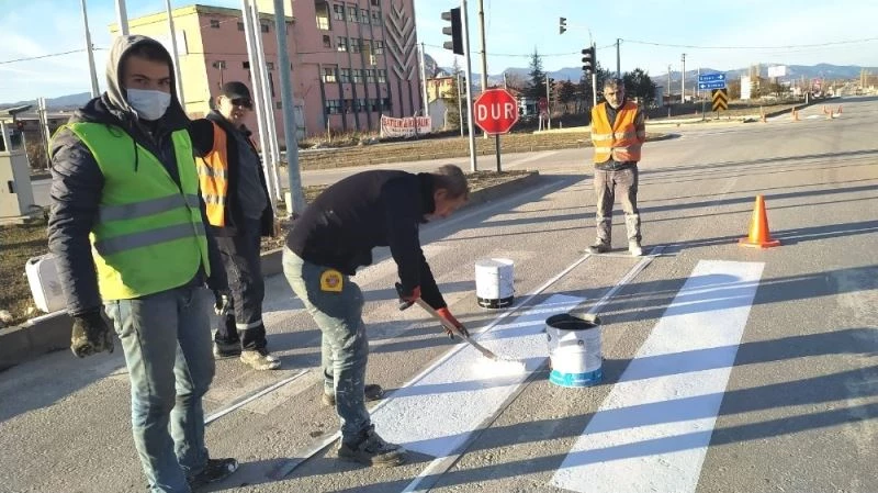 Kütahya’nın Hisarcık ilçesi TOKİ kavşağında yaya güvenliğini sağlamak amacıyla yıpranan yaya geçiş çizgileri yeniden boyandı.