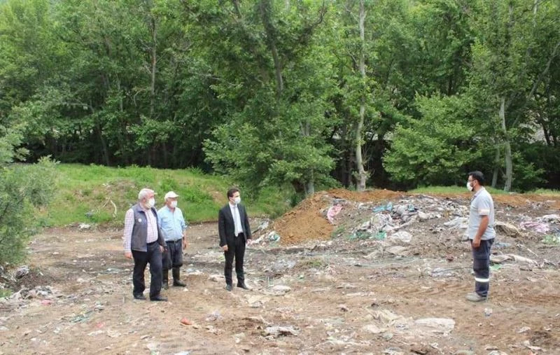Kaymakam Buğra Karadağ, AK Parti İlçe Başkanı Ali Var ve İl Genel Meclis Üyesi Mustafa Şen ile birlikte Hasanlar Köyü baraj yolu üzerinde soba külleriyle karışık evsel atıkların bulunduğu alanda yapılan temizleme çalışmalarını yerinde inceledi.