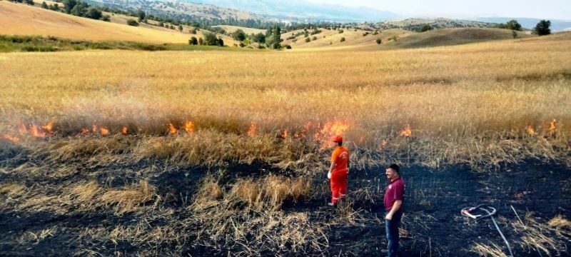 Hisarcık’ta yüksek gerilim hattı koptu, hububat tarlası alev alev yandı