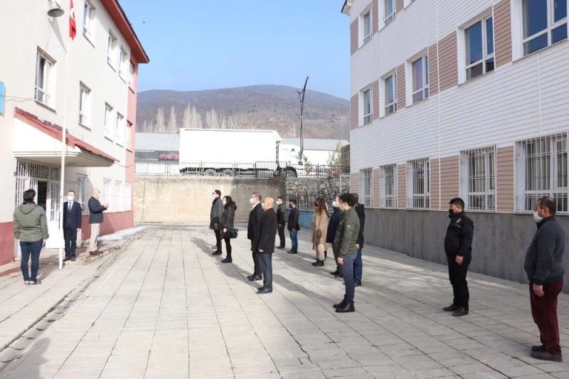 Milli Eğitim Bakanı Ziya Selçuk’un bayrak töreni çağrısı sonrası bugün saatler 10.00’u gösterirken tüm okullarda İstiklal Marşı okundu. Hizan ilçesindeki Şehit Öğretmen Abdurrahman Nafiz Özbağrıaçık Ortaokulu bahçesinde okul idarecileri ve öğretmenler bir araya gelerek İstiklal Marşı okuyup bayrak töreni gerçekleştirdi.