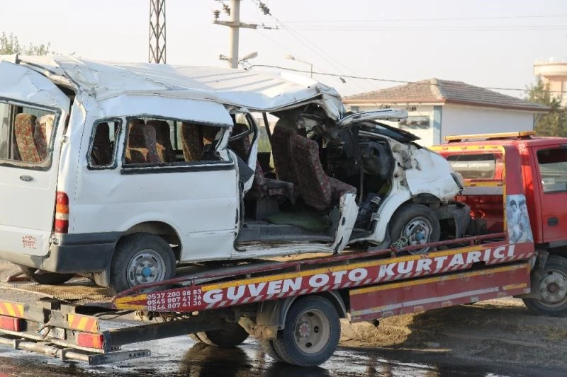 Polis, kazayla ilgili inceleme başlatırken, minibüs çekici yardımıyla yoldan kaldırıldı.