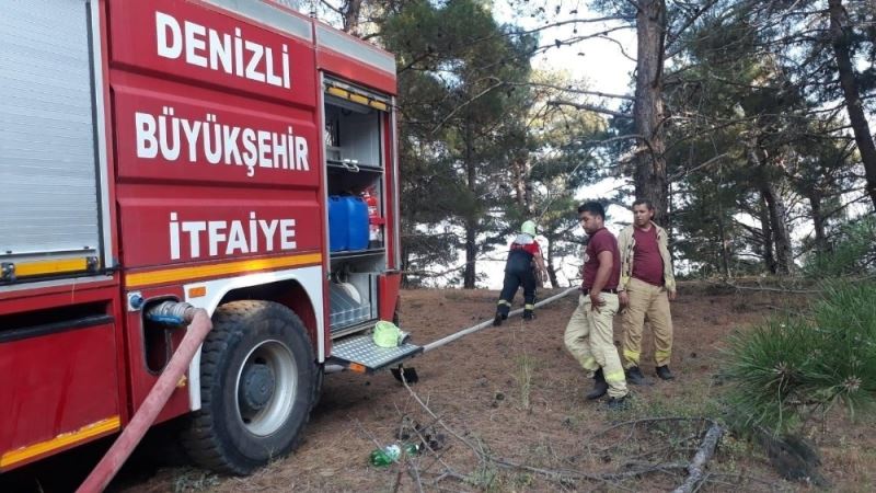 Denizli’de ormanlık alanda yükselen alevlere havadan ve karadan müdahale edildi. Alevlerin yükseldiği alanda ekiplerin hızlı müdahalesi ile kontrol altına alınırken 2 dekar alan zarar gördü.