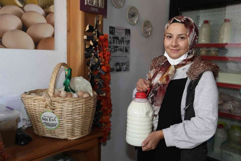 Yoğun talep nedeniyle köydeki komşularından da destek alarak siparişleri yetiştirdiğini söyleyen Selda Karaduman, “İlk başta 2 tane inekle birlikte hobi olarak başladık bu işe. Bir süre sonra elimizde ürünler çok fazla gelmeye başladı. Ben de fazla olanları elimden çıkarmayı düşündüm ve çevremdekilere dağıtmaya başladım. Alım ve satım güzel olunca, sütten gelen parayla tekrar inek aldım. Ondan sonra da 8 tane ineğimiz oldu. Daha sonra başkanımız Hamid bey burayı açmamıza vesile oldu. Günlük inek sütü, tereyağı, kaymak, köy tavuğu yumurtası ve kesimi de yapıyoruz. Yetişemediğimiz zaman da köydeki arkadaşlardan destek alıyorum. Onlar bana destek sağlıyor, ben de maddi anlamda onlara destek sağlıyorum” dedi.