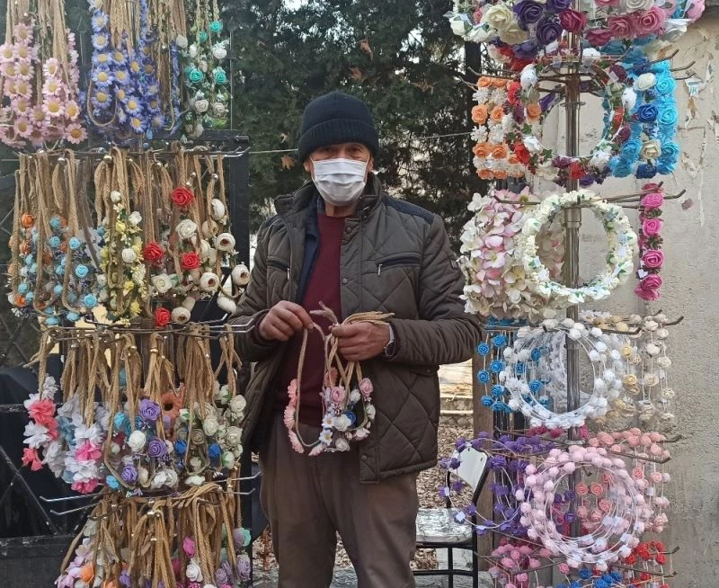 Tarihi Kapalı Çarşıda 7 yıldır el emeği göz nuru ürünlerini satarak geçimini sağlayan 4 çocuk babası Mustafa Gül, “Çiçekten taçlar yaparak hem paramı kazanıyorum hem de insanları mutlu etmenin huzurunu yaşıyorum” dedi.
