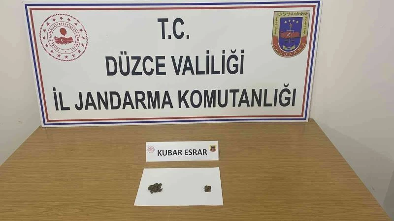 İl Jandarma Komutanlığı ve Akçakoca İlçe jandarma Komutanlığı ekipleri ilçeye bağlı Melenağzı köy yolunda narkotik köpeği destekli yol kontrol uygulaması yaptı. Uygulama çerçevesinde Hollanda plakalı otomobili durduran ekipler, sürücü ve içindeki bir kişinin şüpheli hareketleri sonrasında şahısların üzerinde ve otomobilde arama yaptı. Arama sonucunda V.E. ve F.E. isimli şahısların üzerinden kubar esrar maddesi ele geçirildi. Şahıslar ifadeleri alınmak üzere gözaltına alınarak Akçakoca İlçe Jandarma Komutanlığına götürüldü.