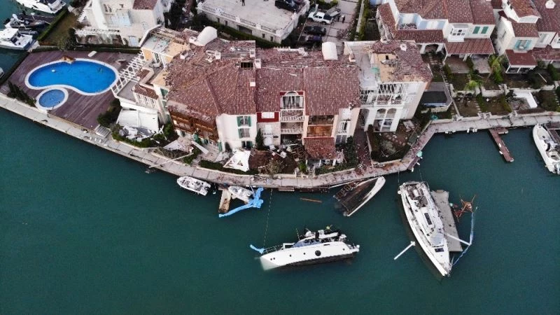 İzmir Çeşme’de dün akşam meydana gelen hortum felaketinin boyutları gün ağarınca ortaya çıktı. Hortumun içine kattığı alanda bulunan ev ve arabalarda büyük zararın olduğu görülürken, felaketten en fazla zarar gören Alaçatı Mahallesindeki lüks site havadan görüntülendi.