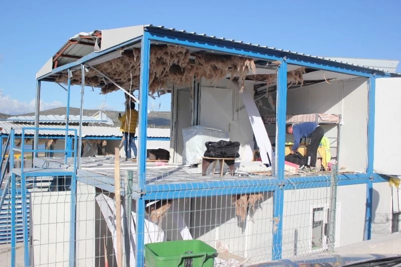 İzmir Çeşme’de meydana gelen hortum, şantiye alanındaki konteynerde kalan işçileri yaraladı. Çeşitli illerden çalışmaya gelen işçiler, hortumun etkisiyle bulundukları koğuştan iki üç sıra sonraki koğuşa kadar sürüklendiklerini söyledi.