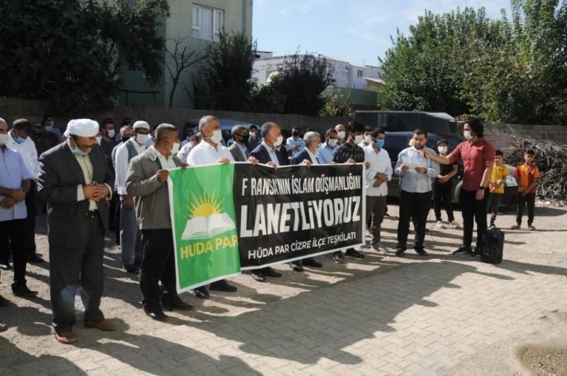 Cuma namazı sonrası Nur Mahallesi Şehit Şeyh Zeki Camisi önünde bir araya gelen grup, Fransa ve Fransa Cumhurbaşkanı Emmanuel Macron’un Müslümanlara yönelik açıklama ve uygulamalarına tekbir ve sloganlarla tepki gösterdi. Cami önünde bir araya gelen grup adına açıklama yapan Hüda-Par Cizre teşkilatı basın sözcüsü Cüneyt Özkaya, sözde demokrasisi ve özgürlükleri ile övünen Fransa’nın düşmanlık ve ötekileştirme furyasının başını çektiğini söyledi. Özkaya, "Söz konusu Müslümanlar ve İslam olunca, bütün özgürlükçü ilkeleri helvadan birer puta dönüşen Fransa, kendi vatandaşı Müslümanları haklarından mahrum edebilmektedir. Fransa’nın toy, cahil ve kaprisli Cumhurbaşkanı Emmanuel Macron, açıklama ve uygulamalarıyla İslam’a karşı olan kin ve nefretini artık aleni bir savaşa dönüştürmüştür. Son iki asırda başta Cezayir olmak üzere Afrika’nın birçok ülkesinde İslam topraklarını işgal ve talan etmiş, yüz binlerce Müslüman’ı katlederek soykırım uygulamıştır. Şu andaki refah ve zenginliğini halen sömürmekte olduğu İslam topraklarına borçludur. Müslümanlar bunların hiç birini unutmuş değildir. Fransa halen bunların hesabını vermemiştir. Aynı şekilde önceden sömürgesi olan Benin, Burkina Faso, Gine, Fildişi Sahili, Mali, Nijer, Senegal, Togo, Kamerun, Orta Afrika Cumhuriyeti, Çad, Kongo, Ekvator Ginesi ve Gabon gibi Afrika ülkeleri Fransa’ya hala sömürge vergisi ödeyen ülkelerdir. 2015 yılında Paris’te Charlie Hebdo’ya yapılan saldırıların ardından çıkarılan OHAL ve terörle mücadele yasası, İslam’a ve Müslümanlara karşı devlet eliyle bir cadı avına dönüştürüldü. Okullarda başörtü, çarşı ve pazarda burka ve peçe yasaklandı. Müslümanların cami, dernek, lokal, okul gibi kurumların kapatılmasını adli makamların elinden alarak valilerin keyfi kararlarına bırakıldı" dedi.
