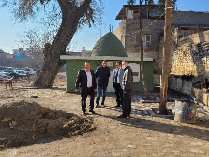 Kilis Belediye Başkanı Servet Ramazan, Hulk Dede Türbesi çevresinde düzenleme yapılan yerde incelemelerde bulundu.