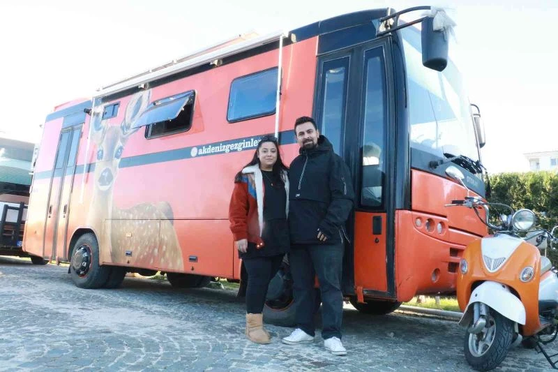 Antalya’da yaşayan Yağmur ve Mert Kaybaki çifti, hurda halde aldıkları otobüsü lüks bir karavana çevirdi. Nişanlıyken aldıkları otobüsü düğünlerine kadar en ince ayrıntısına kadar düşünüp yaptıran çift, karavanlarını düğün arabası olarak da kullandı. 6 aydır evli olan ve karavanda yaşamlarını sürdüren genç çift her gün istedikleri bir manzaranın karşısında uyanmanın keyfini yaşıyor. Karavanda yaşamı herkese tavsiye eden Mert Kaybaki, “Bir gün Konyaaltı sahili bizim manzaramız olabiliyor bir gün Boğaçayı manzaramız oluyor. Yerimizi kendimiz belirliyoruz” dedi.