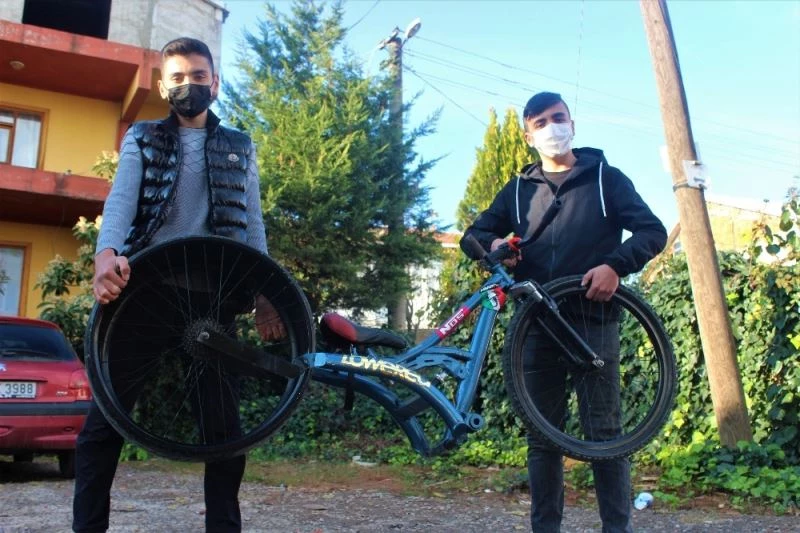 Kocaeli’nin Gebze ilçesinde yaşayan 16 yaşındaki 2 arkadaş, pandemi döneminde can sıkıntısıyla hayata geçirdikleri ve hurda demirleri kullanarak yaptıkları araba lastikli bisiklet, vatandaşlardan yoğun talep gelmesi üzerine ekmek kapıları oldu.