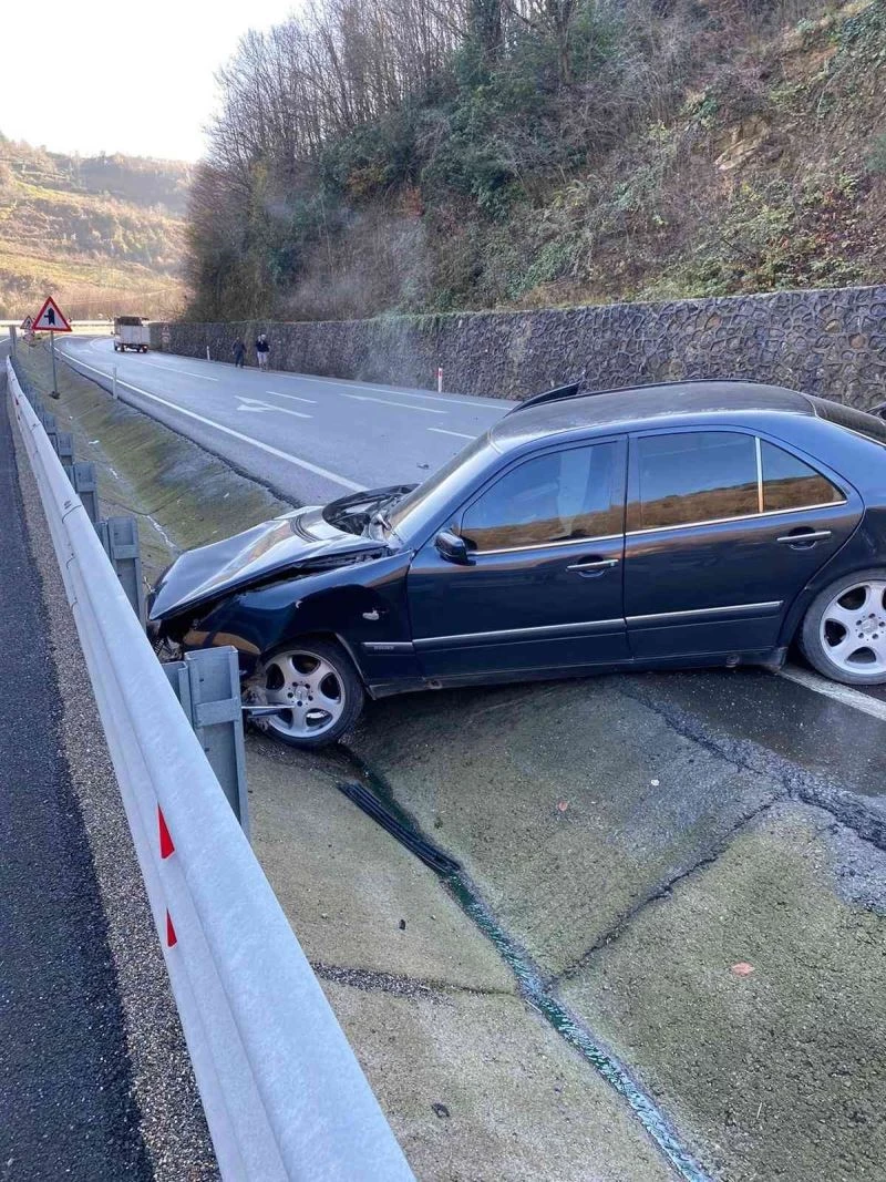Zonguldak-Ereğli yolu üzerinde sürücüsünün kontrolünden çıkan otomobil yol kenarında demir bariyerlere çarptı. Şans eseri kazada yaralanan olmazken, araçta maddi hasar meydana geldi. Polis kazayla ilgili soruşturma başlatırken, araç çekici yardımıyla yoldan çekildi.