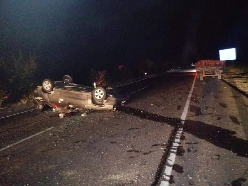 Denizli’de meydana gelen kaza da traktör römorkuna arkadan çarpan otomobil takla attı.
