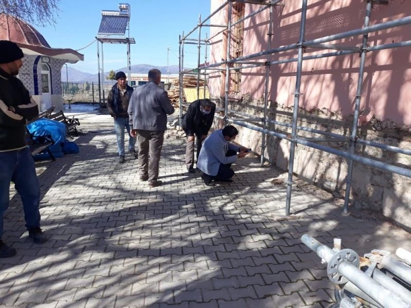 Konya’nın Hüyük ilçesinde bulunan ve restore yürütülen tarihi camide çalışmaların sürdüğü bildirildi.