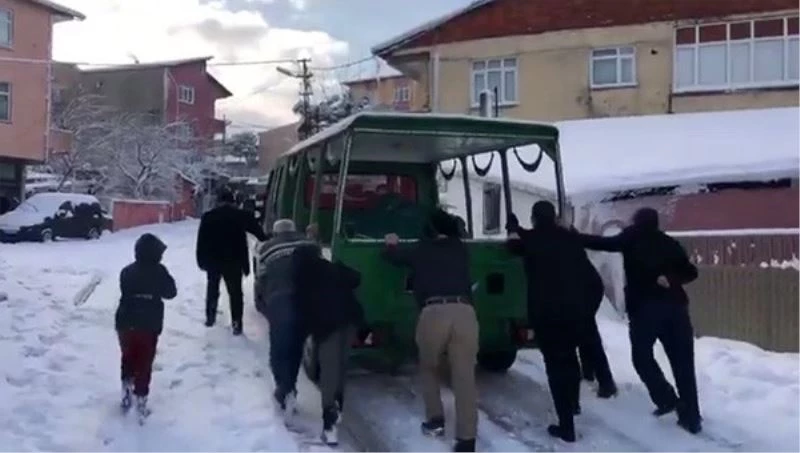 İstanbul’da etkili olan kar sonrası iddiaya göre kış lastiği olmadığı için ilerlemekte zorlanan İBB’ye ait bir cenaze aracını vatandaşlar itti.