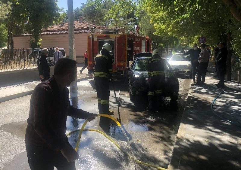 İçerisinde askerlerin bulunduğu otomobilde çıkan yangın paniğe neden oldu