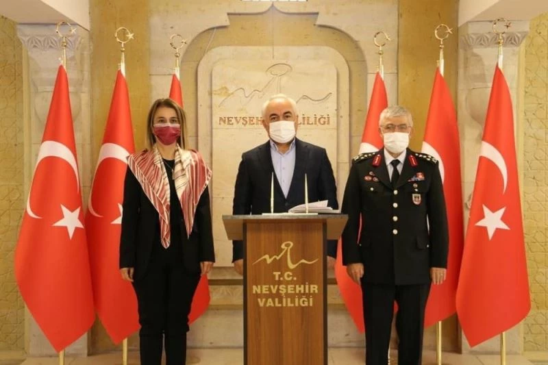 İçişleri Bakan Yardımcısı Mehmet Ersoy ve Jandarma Genel Komutanı Orgeneral Arif Çetin, Nevşehir Valisi İnci Sezer Becel’i ziyaret etti.