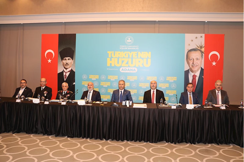 Yerlikaya, toplantıda, Adana'nın huzur ve güvenliği için Valilik koordinasyonunda, emniyet, jandarma ve sahil güvenliğin yapmış olduğu hizmetleri masaya yatırdıklarını anlattı.