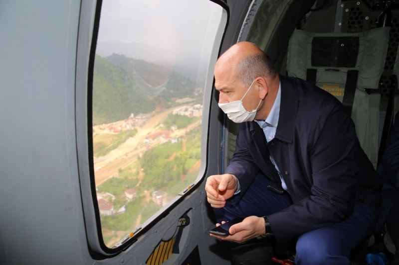 RİZE (İHA) – İçişleri Bakanı Süleyman Soylu, Rize’de afet bölgelerini havadan inceledi.