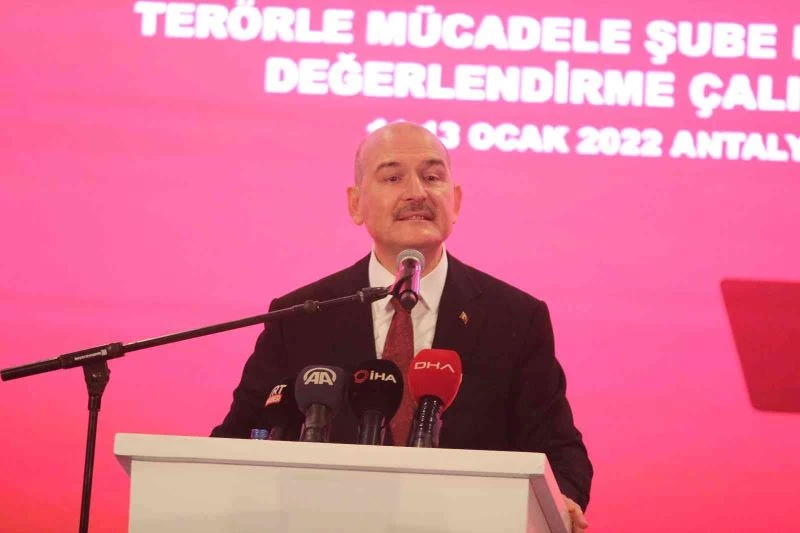 Antalya’nın Serik ilçesi Belek turizm merkezindeki bir otelde düzenlenen Terörle Mücadele Şube Müdürleri Değerlendirme Çalıştayı’na katılan Soylu, "Terör örgütünün saflarına katmaya çalıştıkları kişi sayısı gittikçe azalmaktadır. Geçen yıl 53, bu yıl ise 51. Şimdi yeni bir tezgahları var, 500 kişilik liste yaptılar. Yapan Murat Karayılan ve arkadaşları. Bu listeyi Türkiye’ye kendi yandaşlarına, beraber kirli siyasi yolculuk yaptıklarına ve onları tekrar 2022 yılında dağa kazandırmak için gönderiyorlar. Türkiye eski Türkiye değil Allah’a yemin olsun ki kafanıza çökeriz. TBMM’ye girmekle terörist sıfatınız kaybolmaz. Her şeyi takip ediyoruz. Bu ülkenin huzurunu, kardeşliğini, barışını bozdurmayacağımızı bilin. Terörle mücadelede zirvedeyiz. Biz mücadeleye devam edeceğiz. Murat Karayılan canını alacağız bilesin. Sadece senin canını aldığımız seni destekleyenlerin de canını alacağız. Türkiye’nin tamamı sevinecek. Üzülecek olanların büyük kısmı ise Meclis’te olanlar ve onların destekçileridir" dedi.