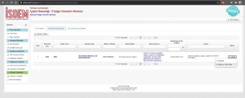 İçişleri Bakanlığınca Kovid-19 Tedbirleri Kapsamında hayata geçirilen İl Sağlık Denetim Merkezi (İSDEM) uygulamasına ihbarlar gelmeye başladı. İSDEM uygulamasına, bir günde bin 159 ihbar geldi.