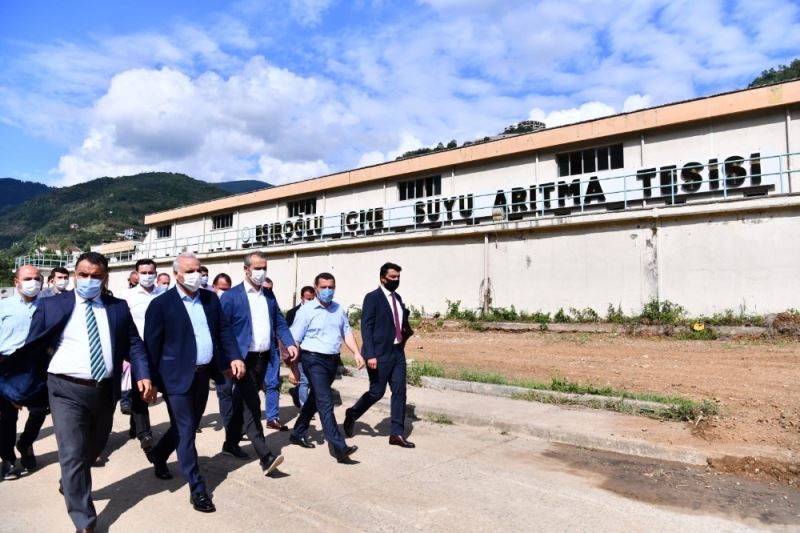 Esiroğlu İçmesuyu Arıtma Tesisinin önemine değinen Başkan Murat Zorluoğlu, “Burası sadece bir içme suyu arıtma tesisi değil aynı zamanda TİSKİ Genel Müdürlüğümüzün birçok anlamda faaliyet icra ettiği bir yerleşke. Buraya seçildiğimizin ertesinde gelmiştik. Bugün ise o dönem verdiğimiz talimatlar konusunda ne kadar mesafe kat ettiğimizi yerinde gördük. Geldiğimizde içme suyu kalitesinin arttırılması bakımından oldukça önemli olan ozonlama sistemi aktif değildi. Pahalı da bir sistem olmasına rağmen kısa bir süre içerisinde arkadaşlarımız bu tesisi aktif hale getirdiler. Ozonlama ünitesi, şehrin içme suyu kalitesini daha da artırdı. İnşallah şimdi imalatına başladığımız Ortahisar’ın 565 kilometrelik içme suyu şebekesinin de değişmesiyle Trabzon, içme suyu kalitesi bakımından Türkiye’de en iyi şehirlerden birisi haline gelecek.” dedi.