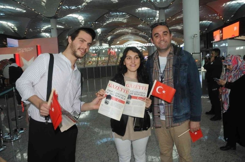 Ayrıca iç hatlar ve dış hatlarda dönem kıyafeti giyen gençler, sepetli bisiklet ile Türk bayrağı ve Cumhuriyet gazetesi dağıtırken, İGA İstanbul Havalimanı’nda Cumhuriyet’in 99’uncu yılı ve İGA’nın 4’üncü doğum günü coşkuyla kutlandı.