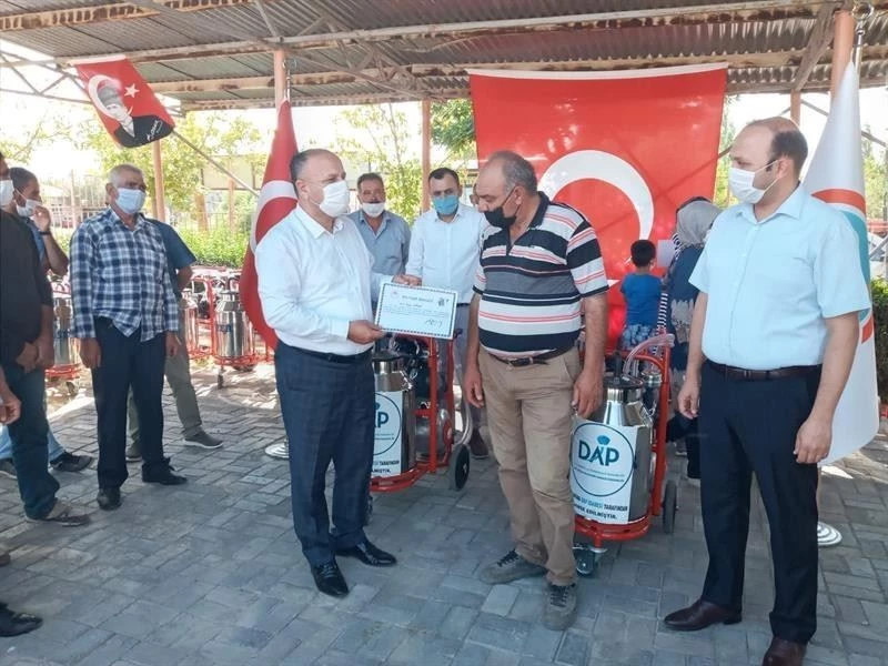 Iğdır’da elde edilen sütün verimini ve kalitesini artırmak için İl Tarım ve Orman Müdürlüğü tarafından hazırlanan proje kapsamında yüzde 70’i DAP Bölge Kalkınma İdaresi Başkanlığından hibe destekli, yüzde 30’u yetiştiricilerden karşılanmak üzere alınan seyyar süt sağım makineleri Karakoyunlu İlçesinde yetiştiricilere dağıtıldı.