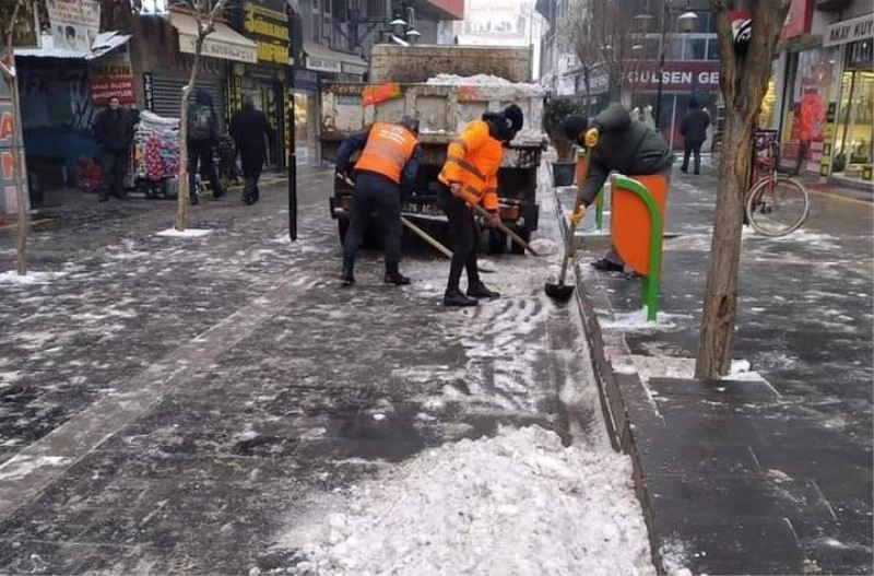 Iğdır Belediyesi, kar yağışı sonrası şehirde oluşan buzlanmalarda vatandaşların olumsuzluk yaşamaması için il genelinde temizlik seferberliği başlattı.