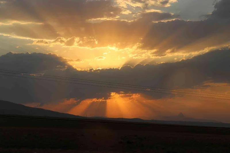 Iğdır’da gün batımında ortaya çıkan görüntüler izleyenlere unutulmaz anlar yaşattı. Iğdır Suveren köyü ile merkezde çekilen görüntülerde batmaya yakın olan güneşin güzelliği görenleri kendine hayran bıraktı. Tuzluca ilçesinde bulunan Tekelti Dağı ile gün batımı bulutlar arasında Suveren köyünde görüntülenirken ortaya çıkan renkler mest etti. Kent merkezinde dron ile yapılan çekimde ise gün batımının görüntüsü seyrine doyumsuz manzara oluşturdu.