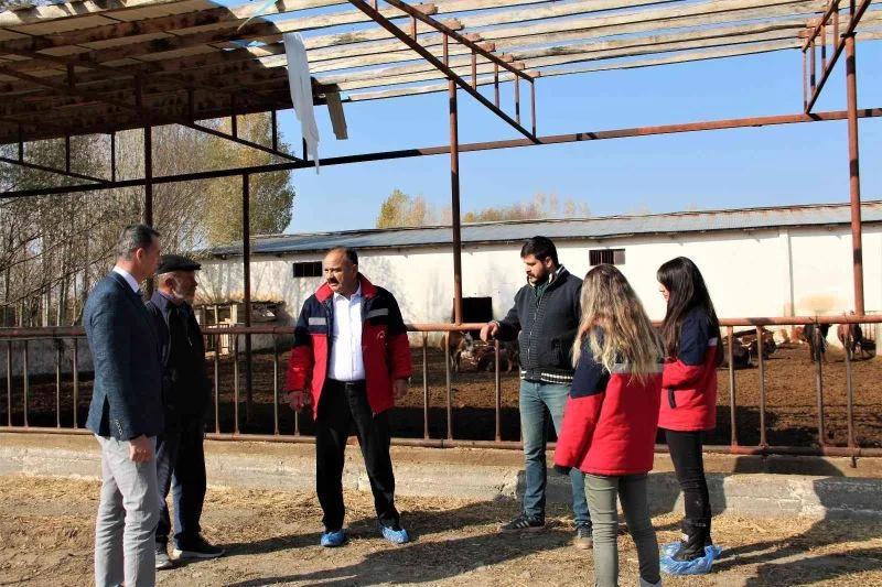 Iğdır İl Tarım ve Orman Müdürlüğü ekipleri hayvancılık işletmelerini ziyaret ederek bilgilendirmede bulunuyor.