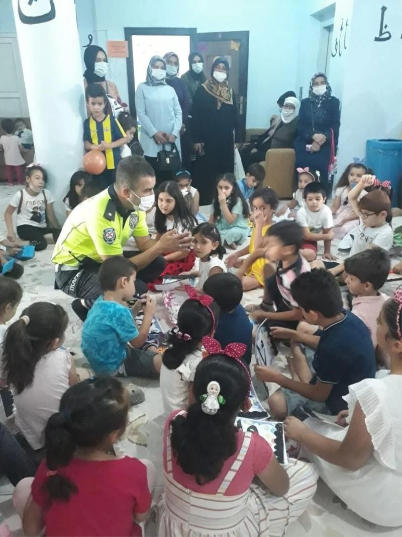 Iğdır İl Emniyet Müdürlüğü Trafik Denetleme Şube Müdürlüğünde görevli trafik polisleri yaz Kur’an kursunda eğitim gören çocuklara trafik ile ilgili eğitim verdi.