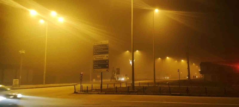 Iğdır’da akşam saatlerinde etkili olan yoğun sis nedeniyle görüş mesafesi düştü.
