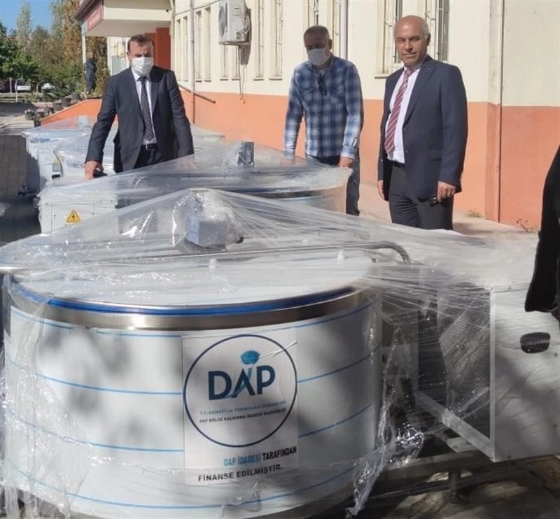 Iğdır İl Tarım Müdürlüğü tarafından hazırlanan proje kapsamında süt üreticilerine yüzde 70’i DAP destekli hibe yüzde 30’luk kısmı ise çiftçi katkılı 10 adet 500 litrelik ve 10 adette 300 litrelik olmak üzere toplam 20 adet süt soğutma tankı dağıtımı yapıldı.