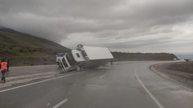 Kaza Iğdır-Doğubayazıt D-80 karayolu üzerinde meydana geldi. Edinilen bilgiye göre Doğubayazıt istikametinden Iğdır’a seyir halinde olan S.K yönetimindeki çekici Korhan kule mevkiinde viraja hızlı girmesi sonrasında sürücünün direksiyon hakimiyetini kaybetmesiyle devrildi. Meydana gelen kazada sürücü S.K hafif yaralandı. Iğdır Devlet Hastanesi’ne kaldırılan sürücünün sağlık durumunun iyi olduğu öğrenildi.