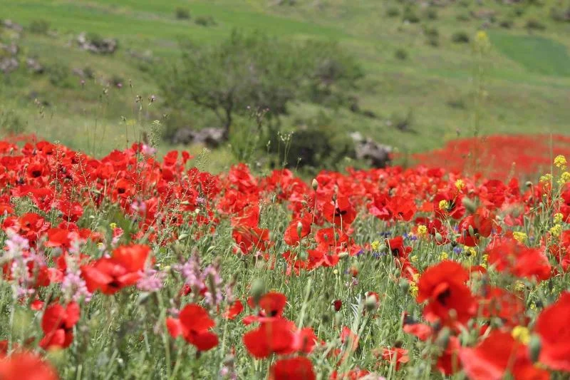 İklimi ve coğrafi koşullarıyla "Doğu`nun Çukurova’sı" Iğdır’ın yüksek kesimlerinde karların geç erimesi ve sıcaklıkların geç etkili olması ile birlikte bahar güzelliği yeni yeni yaşanmaya başladı. Kent merkezinde sıcaklıklar 30 ile 35 derece iken yüksek kesimlerin yeni yeni ısınmasıyla birlikte yeşeren gelincikler, papatya ve mor çiçekler görenleri kendine hayran bırakıyor. Ortaya çıkan görseller adeta birer tabloyu anımsatıyor.