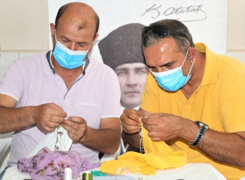 MERSİN - Mersin'de, Toroslar Belediyesinin iğne oyası kursunda eğitim alan 2 erkek kursiyer, becerileriyle dikkati çekiyor.