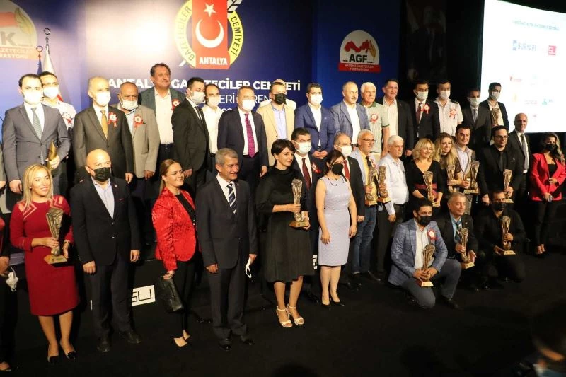 Pandemi nedeniyle geçtiğimiz yıl yapılamayan AGC Basın Ödülleri töreni Su Otel’de gerçekleşti. Törene Antalya Valisi Ersin Yazıcı, Antalya Büyükşehir Belediye Başkanı Muhittin Böcek, Cumhuriyet Başsavcısı Halil İnal, AGC Başkanı Mevlüt Yeni, Muratpaşa Belediye Başkanı Ümit Uysal, Konyaaltı Belediye Başkanı Semih Esen, Döşemealtı Belediye Başkanı Turgay Genç, ATSO Başkanı Davut Çetin, OSB Başkanı Ali Bahar, Akdeniz Üniversitesi Rektörü Prof. Dr. Özlenen Özkan, AK Parti Antalya İl Başkanı İbrahim Ethem Taş, AESOB Başkanı Adlıhan Dere, siyasi parti temsilcileri ve AGC üyeleri katıldı. Tören, saygı duruşu ve İstiklal Marşı’nın okunması ile başladı. AGC Başkanı Mevlüt Yeni’nin konuşması ile devam eden törende sırası ile ödüller sahiplerini buldu. AGC Başkanı Mevlüt Yeni’nin AGC Başkanı olarak katıldığı son tören olmasından dolayı Yeni’ye KKTC Antalya Turizm Temsilcisi Nazmi Pınar, Rauf Denktaş’ın sözünün bulunduğu tablo ve matara hediye etti. Yoğun katılım ile gerçekleşen tören, toplu fotoğraf çekimi ile son buldu.