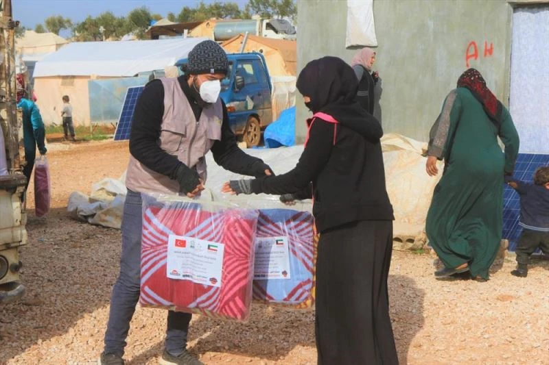 HATAY (AA) - İnsan Hak ve Hürriyetleri (İHH) İnsani Yardım Vakfı ile Kuveyt merkezli Şeyh Abdullah El Nuri Vakfı tarafından Suriye'nin İdlib bölgesindeki ailelere battaniye ve gıda kolisi dağıtıldı.