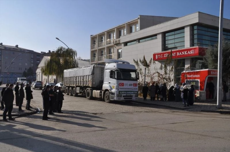 Kahramanmaraş'tan da Suriye'ye 3 tır insani yardım malzemesi gönderildi.