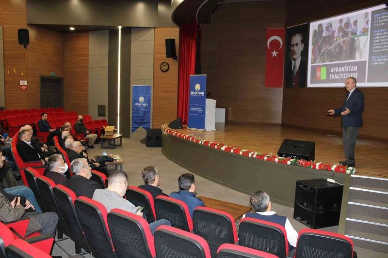 Melikgazi Belediyesi Konferans Salonu’nda düzenlenen İhlas Vakfı Hizmetleri Toplantısı’nda konuşan Başkan Mahmut Kemal Aydın, vakfın faaliyetleri hakkında katılımcılara bilgiler verdi. Vakıfa ait Türkiye’de 32, dünyada 49 yurt bulunduğunu ve bu yurtlarda 3 bin 848 yüksek öğrenim gören öğrenci bulunduğunu aktaran Aydın, "Vakfımız 1975 yılında merhum Enver Ören ağabeylerin kurdukları bir vakıftır. ’İnsanların hayırlısı insanlara faydalı olandır’ hadisi şerifi düstur edinerek yoluna devam eden bir vakıftır. İhlas Vakfı’nın en önemli hususiyetlerinden birisi vergi muafiyet hakkını kazanmasıdır. Vergi muafiyetine haiz vakıf demek devletin yükünü hafifleten vakıf demektir. İhlas Vakfı nasıl devletin yükünü hafifletiyor? Mesela öğrenci yurtlarda öğrencileri barındırıyor. İhlas Vakfı 32 yurdu vasıtasıyla devletin yükünü hafifletiyor. İhlas Vakfının gayesi; gençlerin sapık inançlara bulaşmasını önlemektir. Vakfımızın faaliyetlerini üç ana başlıkta toplayabiliriz; eğitim faaliyetleri, insani yardım faaliyetleri ve kitap hizmetleri. Bu hizmetleri Türkiye’de, Orta Asya’da ve Afrika’da yapıyoruz. Türkiye’de 32 adet, dünya çapında 49 yurdumuz, 3 bin küsur öğrencimiz var. Afganistan’da 13 yurt 750 öğrenci, Kazakistan’da 3 yurt 71 öğrenci, Kırgızistan’da 1 yurt 25 öğrencimiz var. Toplam 49 yurtta 3 bin 848 yüksek tahsil gören öğrencimiz var. Yurtları konforlu ve kaliteli bir şekilde inşa ediyoruz. Ayrıca İzmir’de ve Kayseri’de yapı ruhsatı alındı, yakında yurt inşaatı başlayacak inşallah. Maalesef Kayseri’de bir yurdumuz yok. İnşallah bu boşluğu inşa edeceğimiz yurt dolduracak ve Kayseri’deki hizmetlerimizin merkezi olacak" dedi.