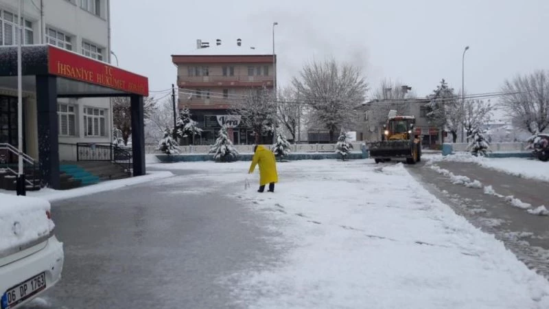 İhsaniye Belediyesi ekipleri sabahın ilk saatlerinde kar temizleme ve yol açma çalışmalarını başlattı. İlçede kurulan halk pazarı alanının karlardan temizlemek için büyük uğraşlar verdi. Ekipler pazar yerinin tamamını temizleyerek kuruluma hazır getirdi.