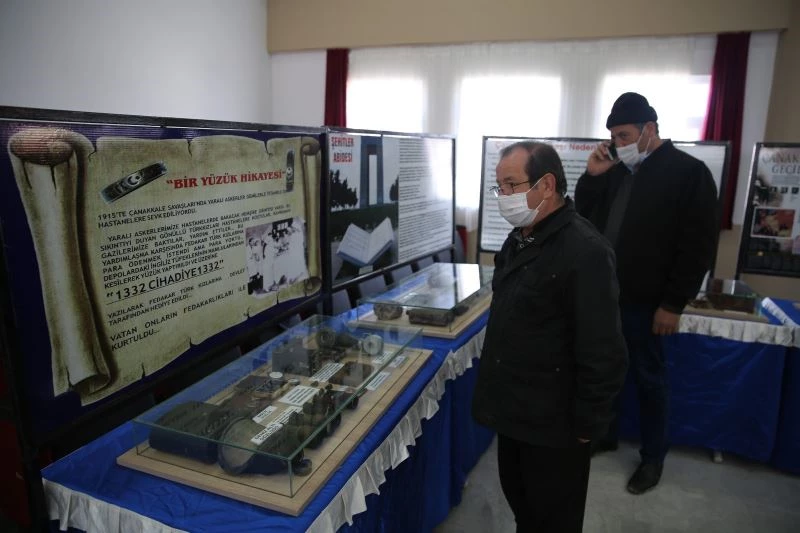 Sergi İhsaniye Turizm Meslek Lisesi’nde açıldı. Çanakkale Savaşları 100. Yıl Derneği tarafından açılan sergide savaşta Mehmetçiğinde kullandığı silah, mühimmat ve malzemeler görücüye çıktı. Sergi alanında cansız mankenler ile siperlerde şehit düşen Mehmetçiklerin tasvirler ile anlatıldı.