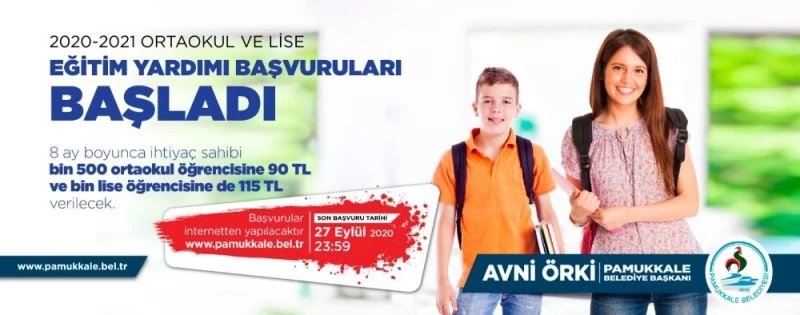 Pamukkale Belediyesi’nin, 2020-2021 eğitim öğretim dönemi eğitim yardımı başvuruları başladı. Pamukkale Belediye Başkanı Avni Örki, Eylül ayı meclis toplantısında ihtiyaç sahibi öğrencilere eğitim yardımı yapılması kararı alınmasının ardından başvuruları internet ortamında almaya başladıklarını söyledi.