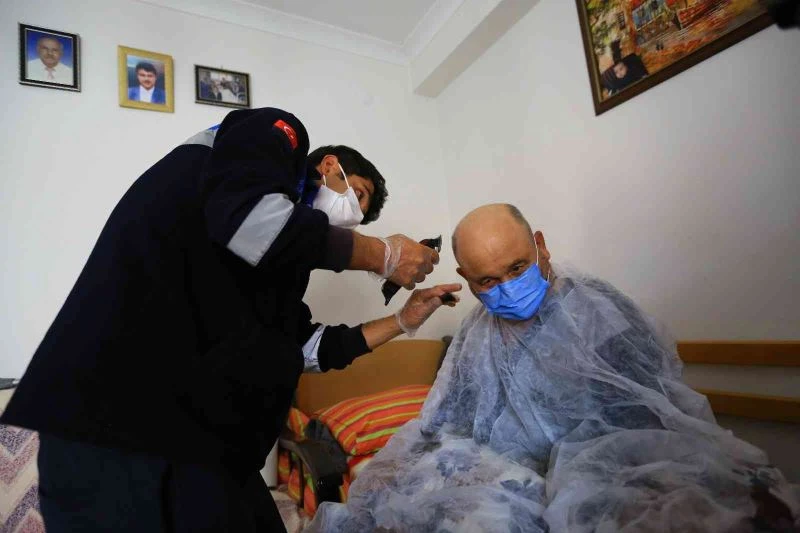 Evde Bakım Hizmetleri vatandaşların kapısını çalan Muğla Büyükşehir Belediyesi, yaklaşan Ramazan Bayramı öncesi yatağa bağımlı ve ihtiyaç sahibi vatandaşları hijyen kurallarına uygun bir şekilde tıraş ediyor.